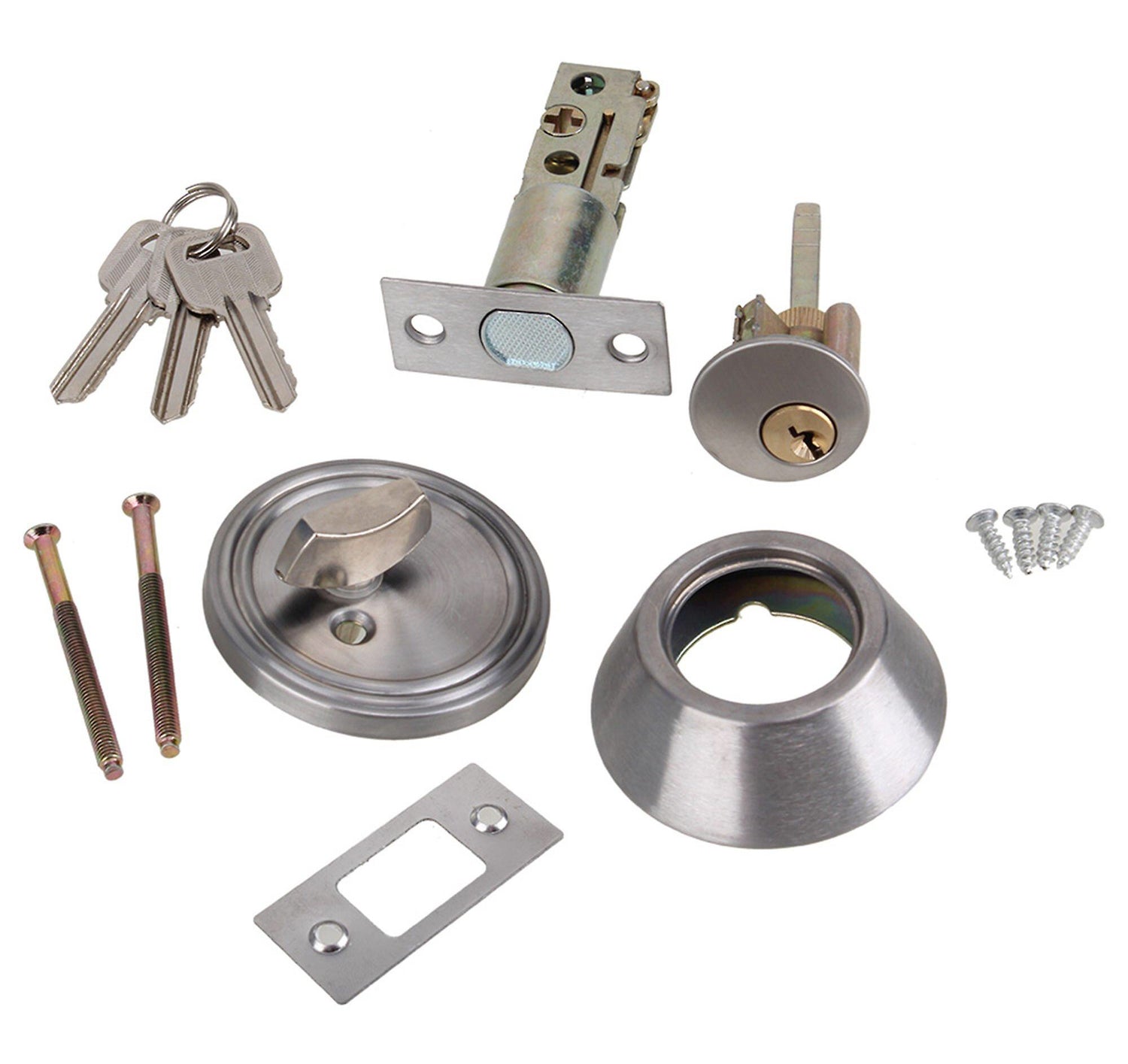 Brushed Nickel Deadbolt Kit features a double cylinder design, adjustable back set of 60-70mm and includes all mounting hardware.