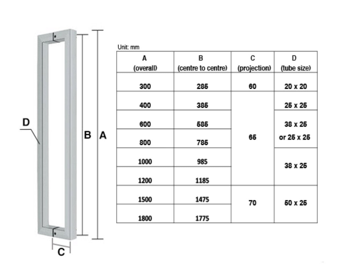 - Suitable for glass, timber and aluminium doors from 5mm to 50 mm thick