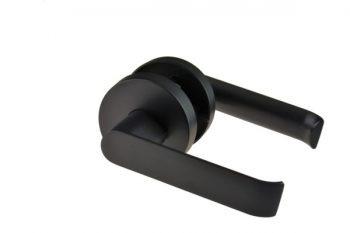 These square, tapered off door lever handle that have a rounded back for a stylish look and comfortable grip. It comes with a round back plate in a matte black finish.