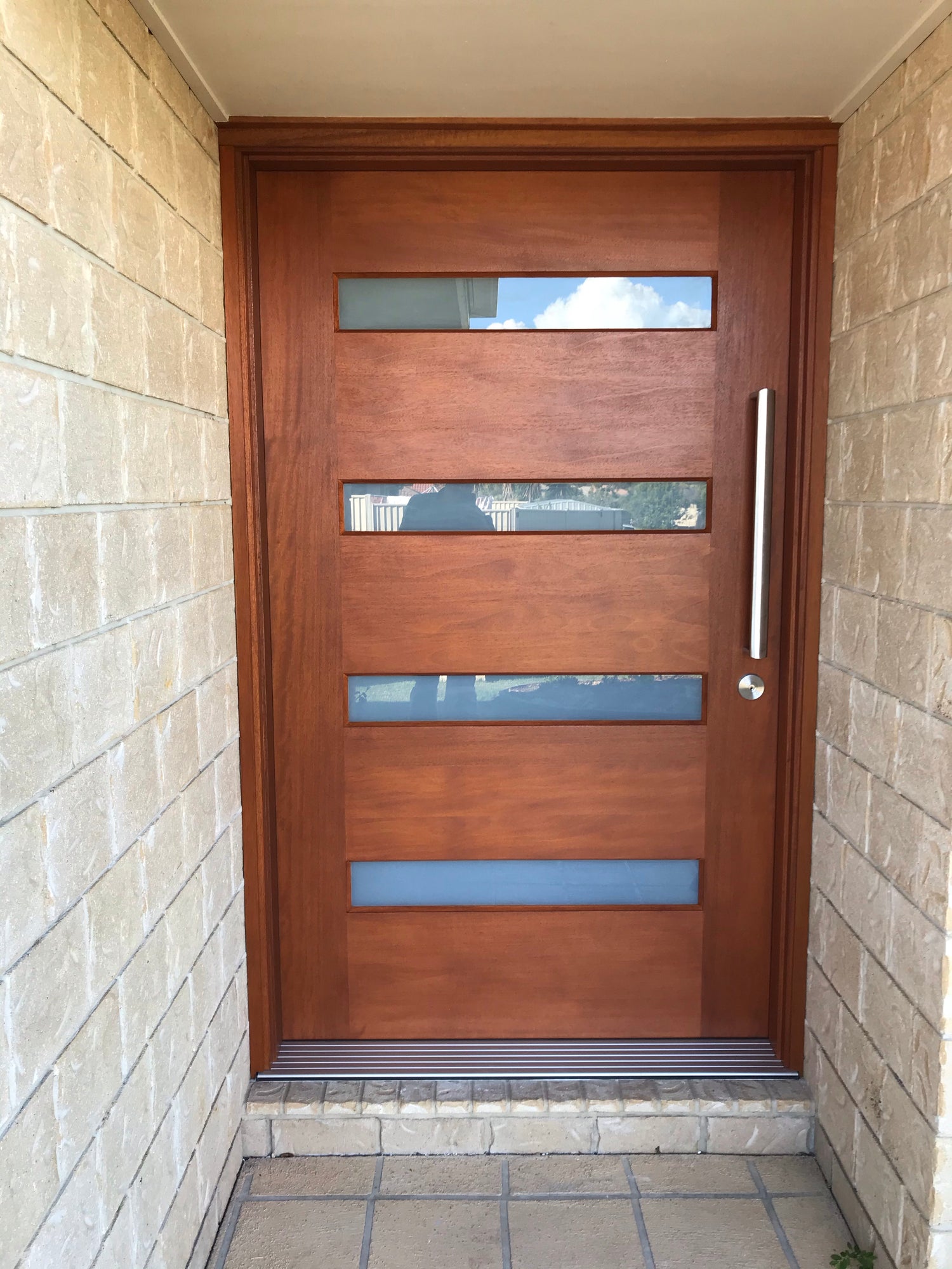 • 1200 x 2040 x 40mm 4 lite solid core engineered meranti horizontal Door with small glass panels