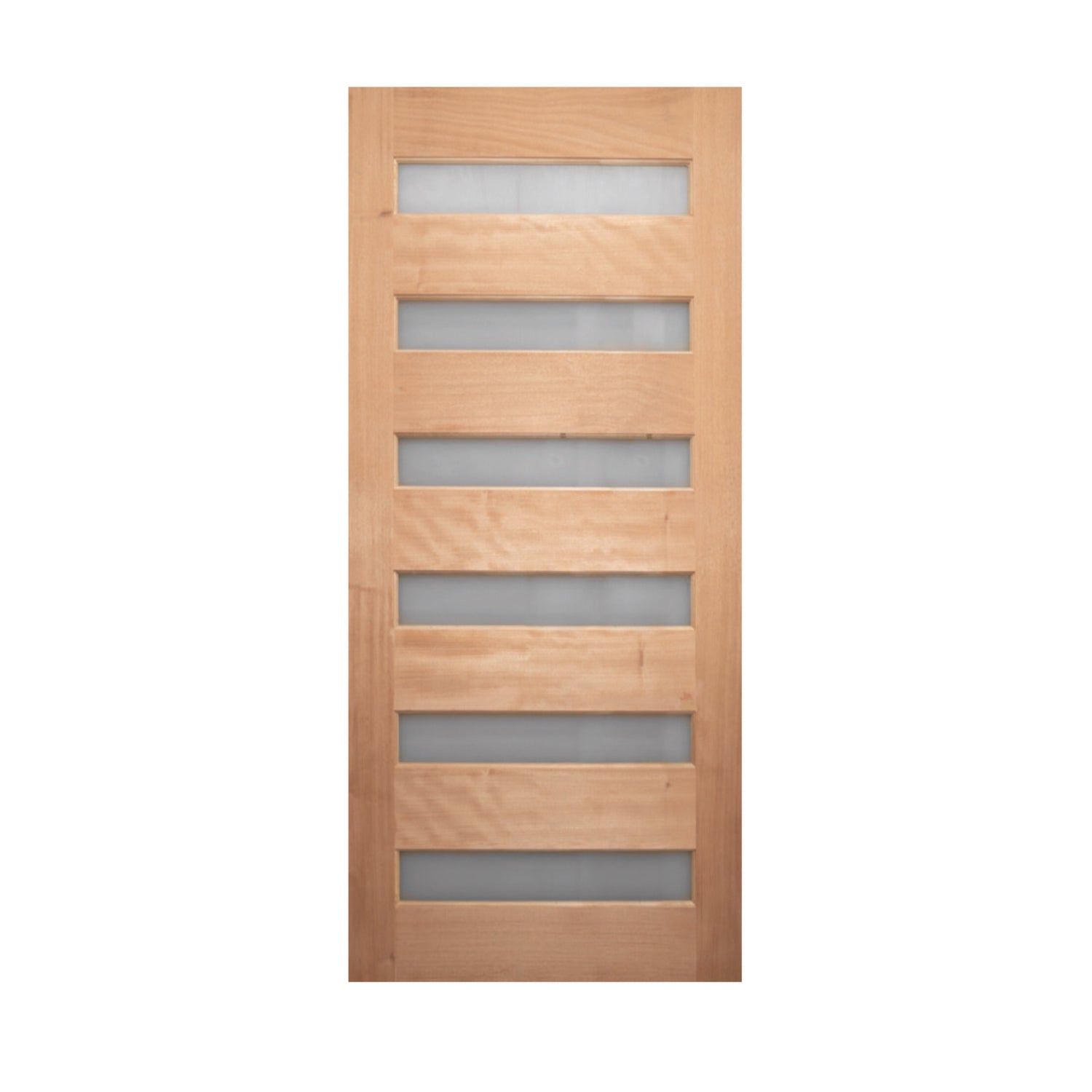 • Solid-Timber Core door with 6.38mm laminated translucent glass and fine-grained veneer. Features an engineered, finger-jointed, solid construction suitable for both interior and exterior use