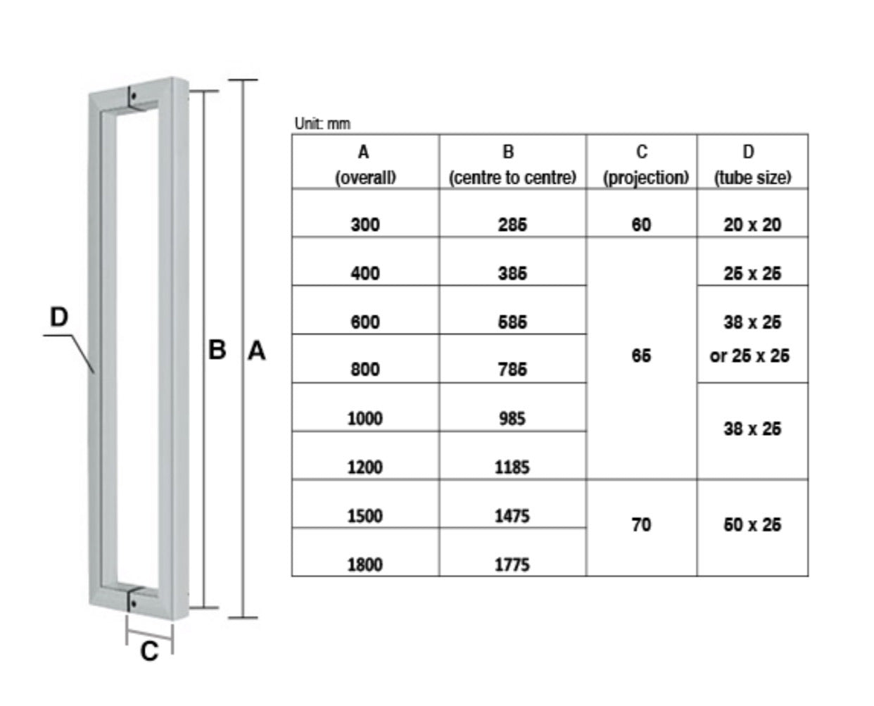 • Suitable for glass, timber and aluminium doors from 5mm to 50 mm thick