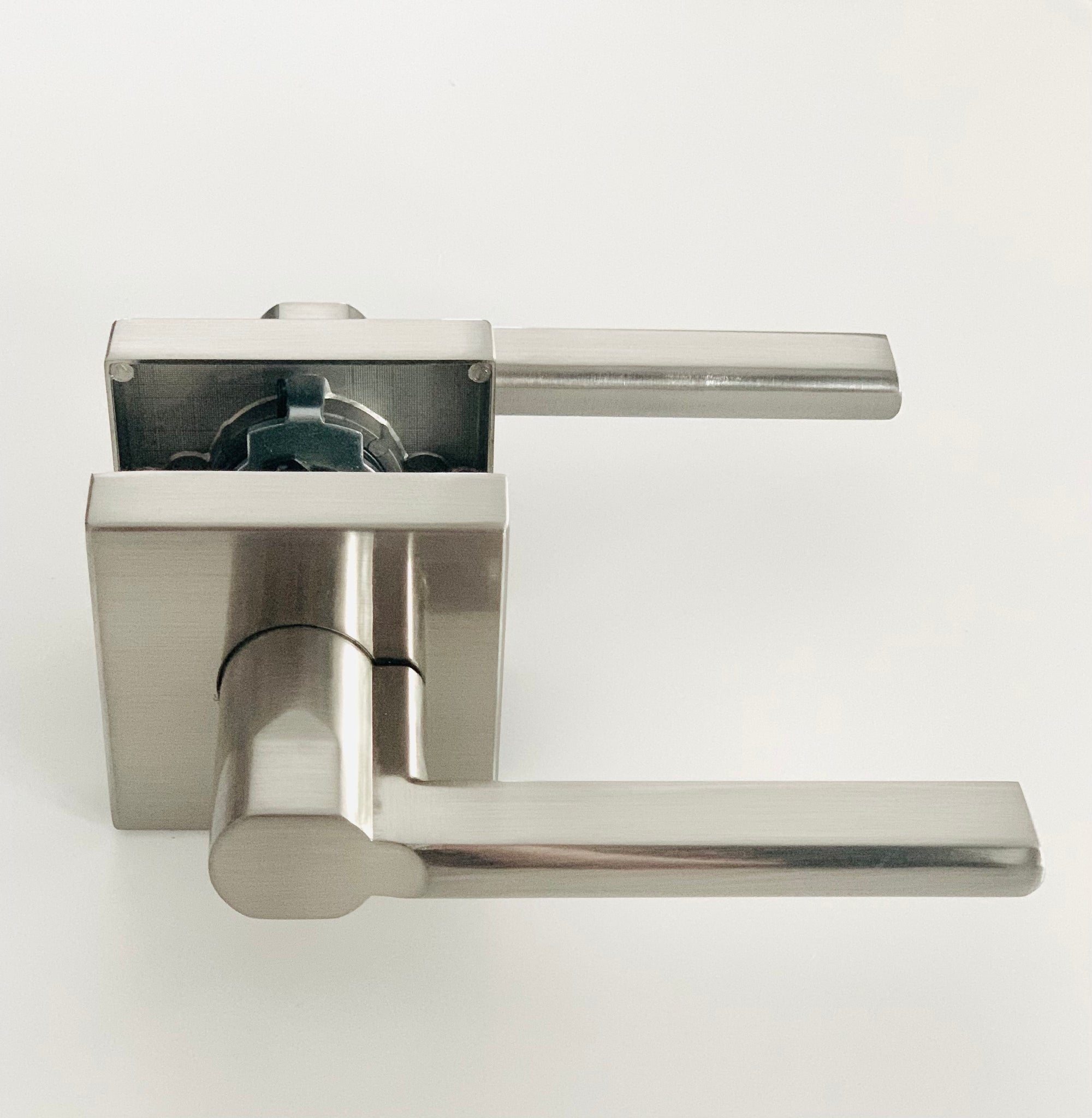 L4- Vienna A Satin Nickel Slim line lever for a modern architectural design look, Comes with a square back plate.