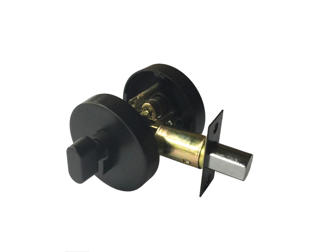 These square, tapered off door lever handle that have a rounded back for a stylish look and comfortable grip. It comes with a round back plate in a matte black finish. These entrance sets come with matching keyed lever handle and a matching keyed deadbolt.
